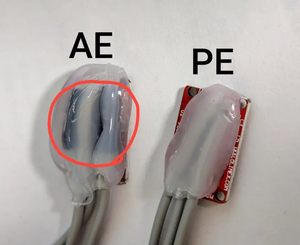 First, identify one PE (passive electrode) and four AE (active electrodes). As shown in the image, active electrodes contain a black component (a chip), while passive electrodes do not.