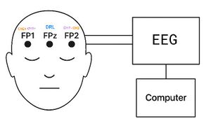 The simplest configuration places the DRL electrode in the middle (FPZ), with CH1+ and CH2+ above the right eyebrow (FP1), and CH1– and CH2– above the left eyebrow (FP2). This setup is reliable and allows both channels to record the same data, providing redundancy and improving data reliability.